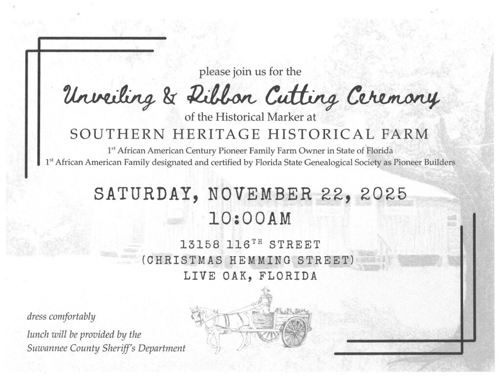 Location: Southern Heritage Historical Farm (13158 116th St., Live Oak, Fl 32060)